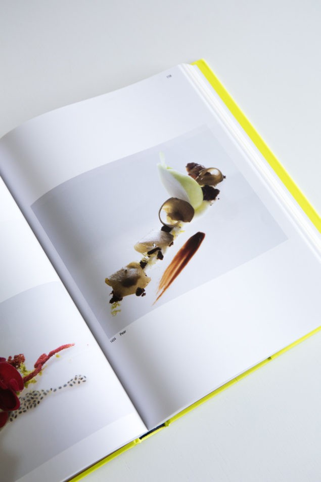Im Jahr 2006 setzt sich also dieser Prozess fort. Die Gerichte sind vom Aufbau exakt wie beim ersten Band geordnet und bieten wieder ein sehr breites Spektrum dieser polarisierenden Küche. Beeindruckend sind hier das „Hibiskus- Papier mit Eukalyptus“ oder auch die „Ananas- Katzenzungen mit Sternanis“ als sogenannte Snacks. „Spähren“ von Olivenöl mit Anchovis oder eine flüssige Krokette sind wieder mal Beispiele der höchst experimentierfreudigen Kunst. Besonders die Desserts haben es mir beim 2. Buch angetan. Oder auch der Käsegang in Form des „The sheep, its cheese and its wool“, bei dem cremiger Schafskäse zusammen mit einer Wolke aus gesponnenen Zuckerfäden an einer Ecke Fruchtpâte angerichtet wurde. Mehr und mehr werden diese Gerichte gar als Landschaften präsentiert. Schäume und Wolken von mit Lecithin versetzten Flüssigkeiten oder auch mittels Stickstoff schockgefrorene Segmente von Grapefruit werden bei dieser recht temperamentlosen Photographie stark vergrößert und recht mittig ins Bild gerückt. Überhaupt kommt diese gewählte Bildsprache komplett ohne großartiges Schi Schi aus.