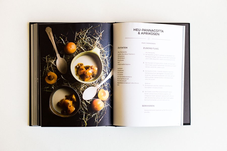 So wie das „Heu- Pannacotta & Aprikosen“. Das Heuaroma extrahiert er durch das Rösten des Heus im Ofen, wonach der Geschmack des Heus in der Sahnemischung ausgelaugt wird. Schade, dass für dieses Jahr die Zeit dafür vorüber ist. Aber die nächsten Aprikosen kommen bestimmt.