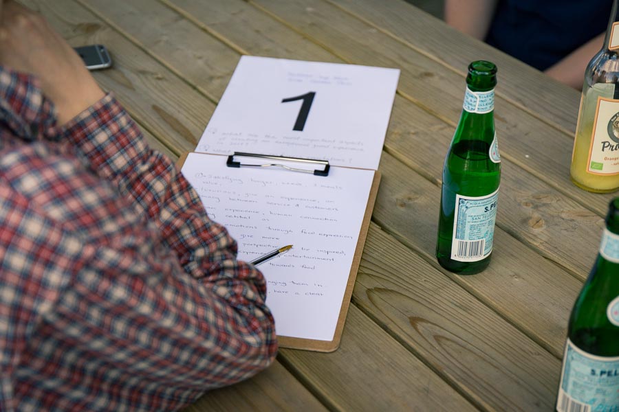 Mit einer eher ungewöhnlichen und nicht weniger spannenden Aufgabe wurden das Publikum zu einem aktiven Teil der Veranstaltung. An 12 Tischen wurden Einzeldiskussionen mit dem Ziel, jeweils einen eigenen Aspekt im Rahmen des Symposiums zu ermitteln, eröffnet. Hier konnte jeder sich den anwesenden Foodiasten öffnen und seine Sicht auf die Dinge teilen. Der anschließenden Auswertung auf der Bühne folgte eine angeregte Fragerunde so dass sich wahrlich jeder angesprochen fühlen durfte.