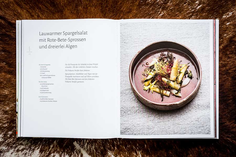Die weiteren Rezepte teilen sich in Kapitel wie Suppen, Hauptspeisen und Desserts auf. Man verfolgt immer wieder den Ansatz, bekannte Gänge wie einem „Irish Stew“ mit Algen neu zu erfinden. Bei diesem Urpsrungsgericht erweitert Michael Schubaur das Geschmacksbild mit Kombu.