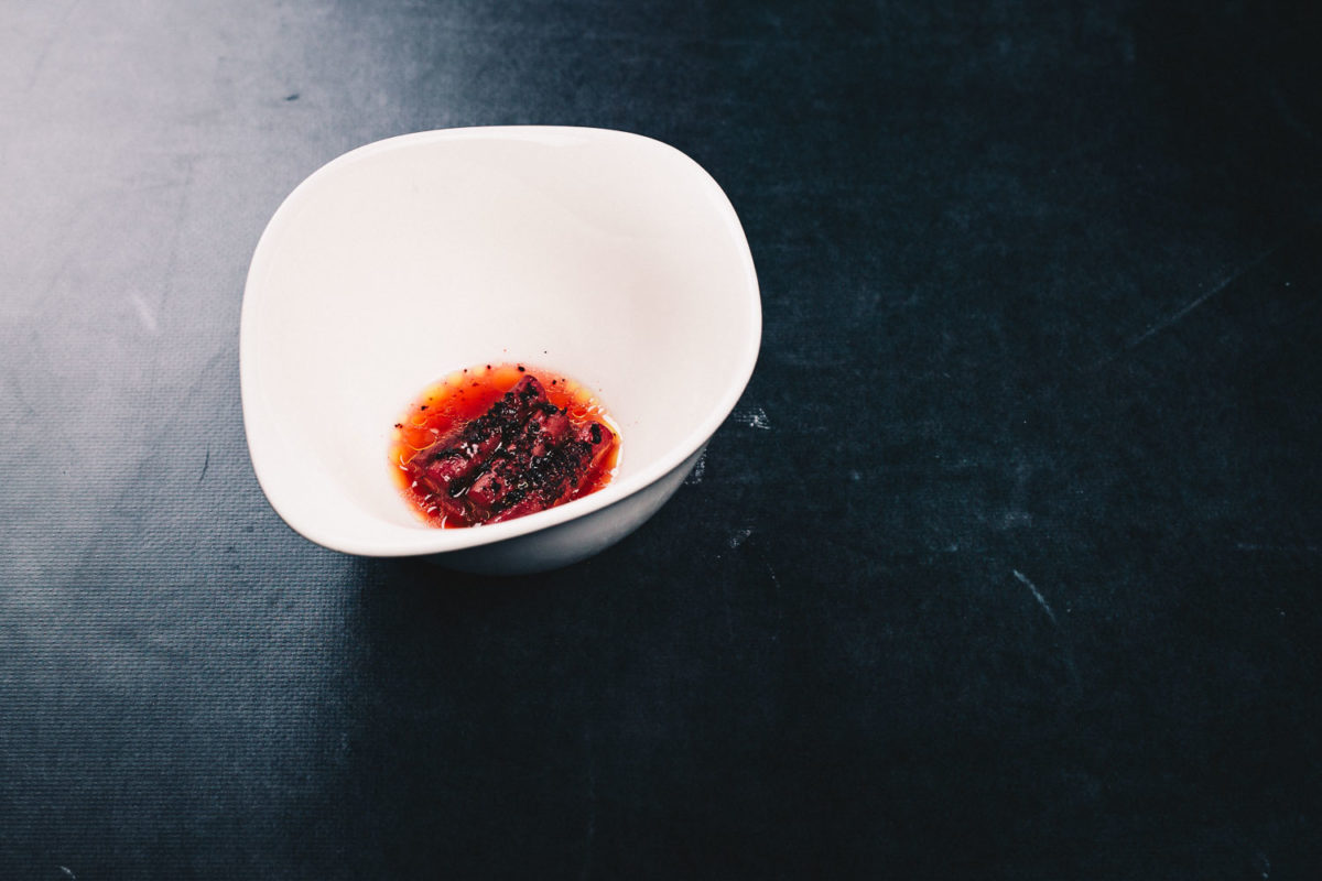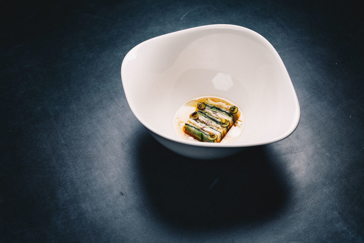 So strotzen seine Teller nicht von drei oder mehreren Deklinationen einer Karotte. Sie sind auch nicht darauf getrimmt, den Gast mit zu viel Komplexität zu überfordern. Oft dauert der Verzehr jedes Ganges nicht länger als ein paar Sekunden, dafür umfasst sein Menü bis zu vierunddreißig Gänge. Man erfährt die mögliche Bandbreite nicht auf einem sondern auf vielen seiner Teller.