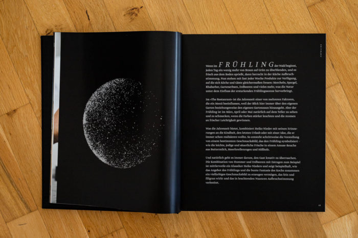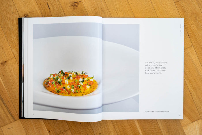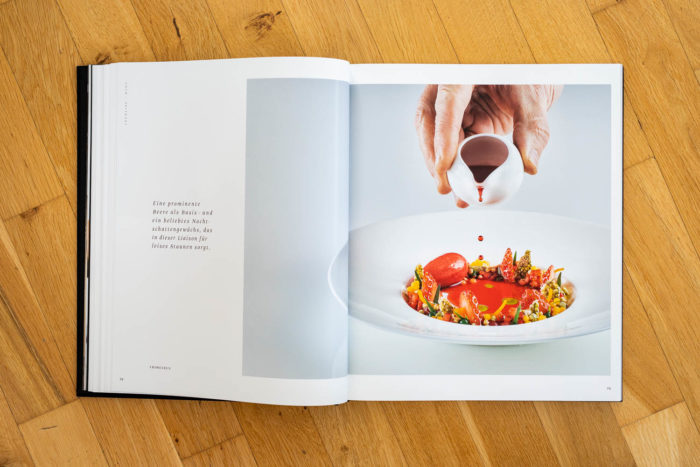 Die Foodfotografie ist im modernen Sprech ausgedrückt enorm crispy. Auf den Punkt scharf und in der Entwicklung von den Farben und Kontrasten knackig und lebhaft. Es entsteht ein natürlicher Eindruck und macht einen enormen Spaß die Bilder anzuschauen. Der Fotograf Fabian Häfeli hat sich hier wahrlich große Mühe gegeben und ähnlich wie der Spitzenkoch enorm präzise gearbeitet.