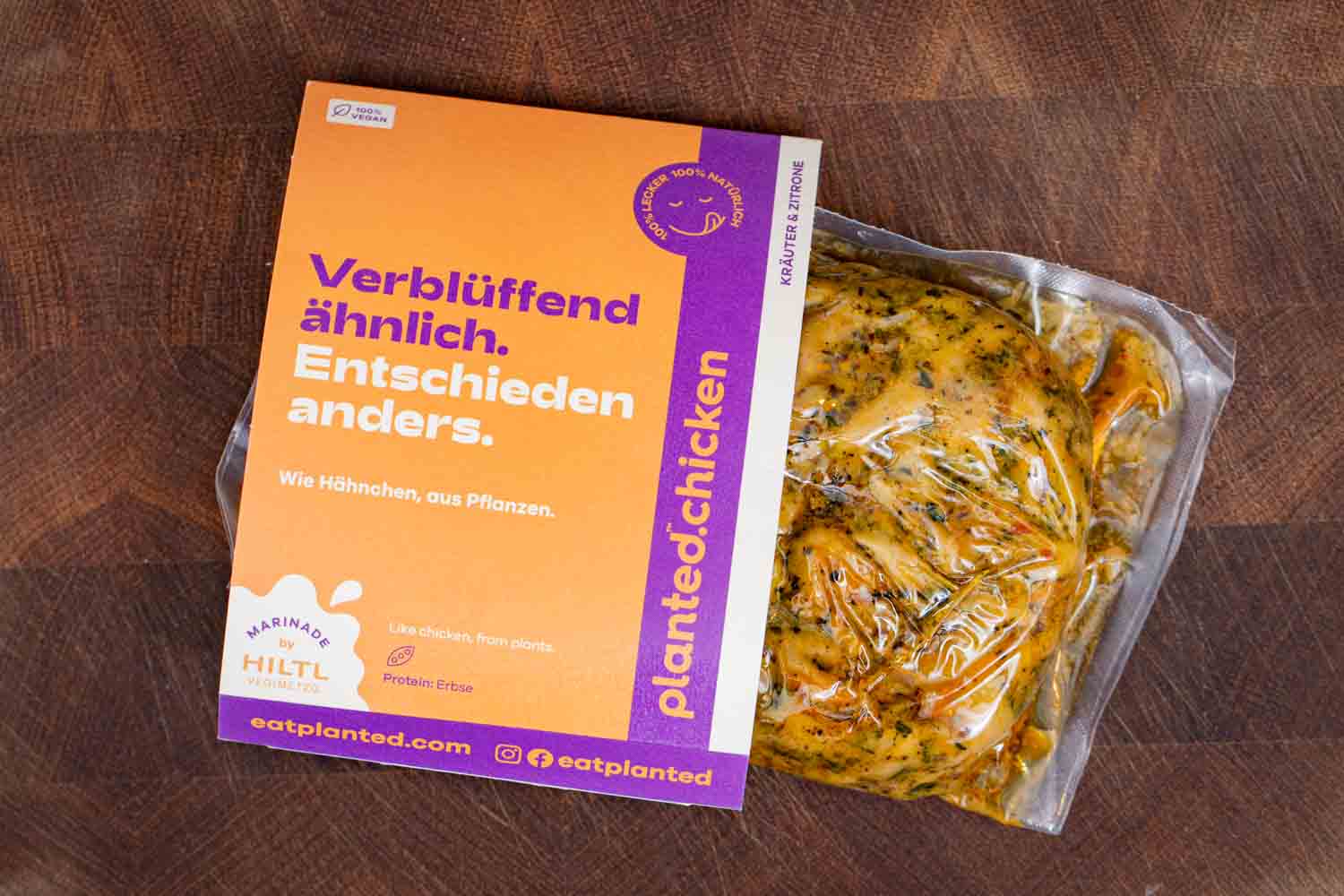planted.chicken in der Natur-Version kommt gerade einmal auf fünf Zutaten. Das finde ich schon sehr beachtlich. Wenn ich beispielsweise den Beyond Meat Burger anschaue, dann sind da mehr als 20 Zutaten enthalten. Und das ist nur der Patty ohne weitere Bestandteile, die man später noch für den restlichen Burger benötigt.