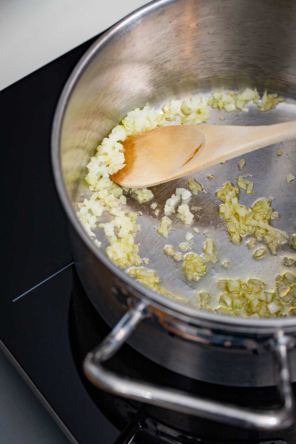 - 1 Haushaltszwiebel oder 2 kleine Schalotten fein gewürfelt