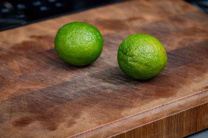 - Limettenjoghurt • Den Joghurt mit dem Abrieb der Limette vermengen und mit Salz und Pfeffer abschmecken.