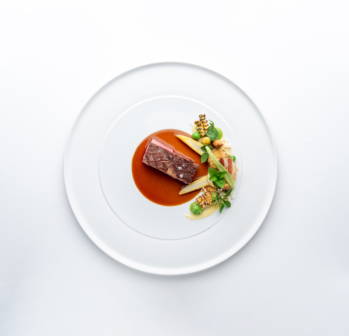 Was dieses Gericht so besonders macht, ist nicht nur die Vielzahl an Elementen, sondern wie organisch sie ineinandergreifen: Fleisch trifft Süße, Kräuter treffen Rauch, Texturen tanzen miteinander, statt gegeneinander zu arbeiten. Es ist ein Lehrstück moderner Produktküche, wie sie Henkels Stil seit Jahren prägt – und eine schöne Erinnerung daran, dass Reduktion oft mehr Tiefe erzeugt als Überfrachtung.