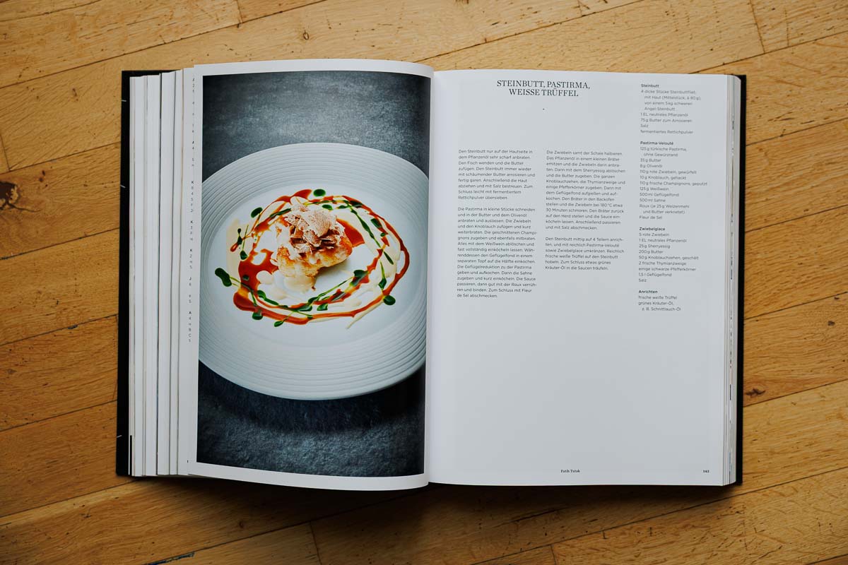 Das Buch gliedert sich, wie gewohnt, nach Köchen, wobei jedem ein eigenes Kapitel gewidmet ist. Das bedeutet: Wer ein bestimmtes Gericht sucht, muss gezielt blättern. Ein Sachregister oder Zutatenverzeichnis fehlt – ein klarer Wermutstropfen in einer ansonsten herausragend kuratierten Publikation. Die Rezepte selbst sind präzise aufbereitet, modular gegliedert und visuell hervorragend unterstützt. Ob man alle Komponenten auch ohne Vorkenntnisse oder Brigade nachkochen kann? Fraglich. Aber das will dieses Buch auch gar nicht.