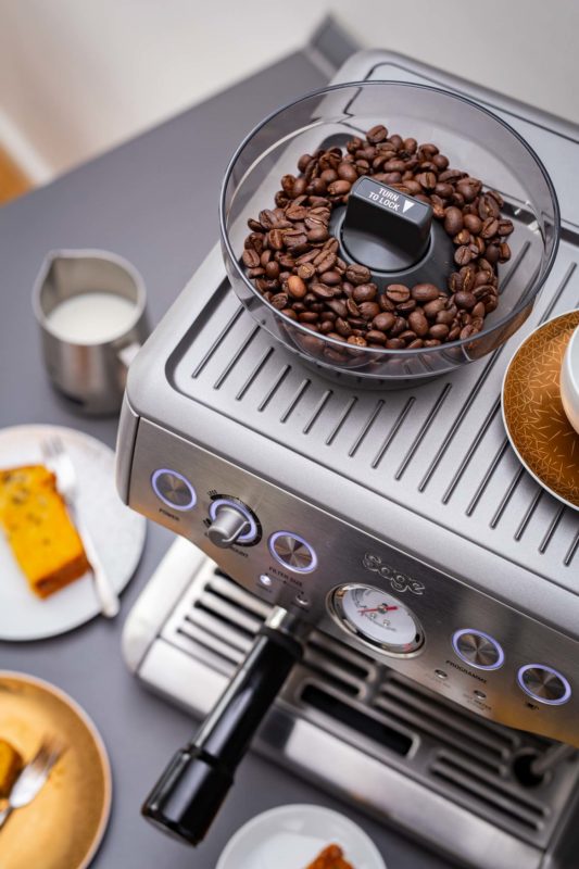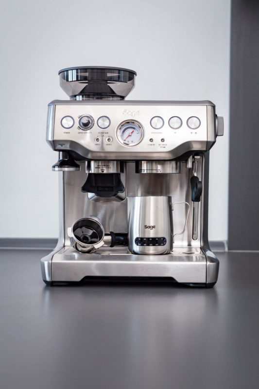 Wer Kaffee mag, wird The Barista Express von Sage lieben. Ich habe sie gegen meine alte eingetauscht und seit nun 14 Tagen im Dauertest. Die Vorteile liegen ganz klar auf der Hand: Integriertes Mahlwerk, Tamper, Milchkännchen mit Temperaturanzeige, 2 Liter Wassertank, programmierbare Tassengröße, Milchaufschäumer und Espresso- Manometer. Das sind längst nicht alle Features dieser Barista Maschine.