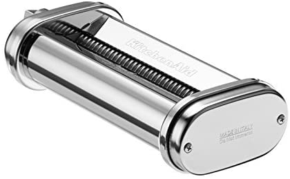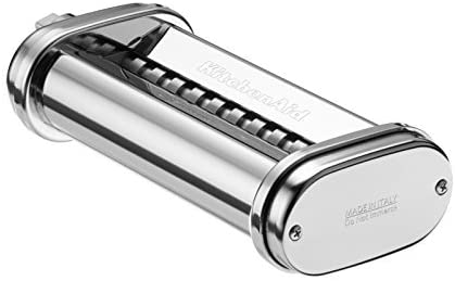Du willst dir die KitchenAid kaufen oder noch besser, du hast sie schon? Dann ist der Aufsatz für die Nudelteigverarbeitung eigentlich Pflicht. Denn damit gelingt dir das Verarbeiten von Pasta spielend leicht. Das dreiteilige Set aus langlebigem, verchromtem Material ist einfach anzubringen und mit dem Motor der KitchenAid gekoppelt. Kein lästiges Kurbeln wird dich nerven. Zudem kommen zwei Messer für die Zubereitung von frischen Tagliatelle oder Spaghetti für dich mit diesem Set in Frage. Der Teigroller kann Lasagne mit einer Breite von bis zu 140 mm herstellen. Das ist mehr als ausreichend. Du siehst, das Ding musst du als KitchenAid Besitzer einfach haben.